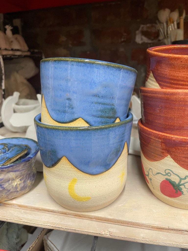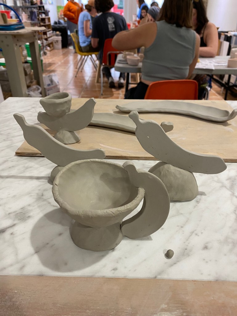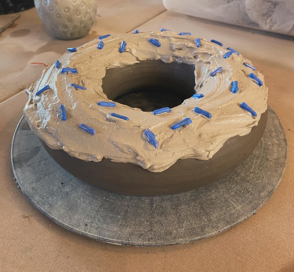 Work from the first half of 2025 while I was recreating a sense of fun and play with ceramics. I wanted to include in process pictures to capture the vibrancy of the studio setting.